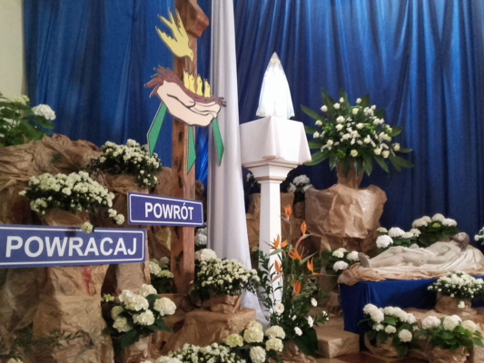 piękne;) tylko te zdj gdzie jest szyld „miej miłosierdzie….” jest bezsensu, no bo skoro ofiara Jezusa(oprócz Eucharystycznej) została złożona na krzyżu tylko raz, to czemu Kolegium Nauczycielskie przyjęło modlitwę „heretyczki” Faustyny „Dla Jego Bolesnej Męki Ofiaruje Tobie…” bez sens.. I proszę Ciebie usuń te zdj główne z tym szyldem bo psuje nastrój